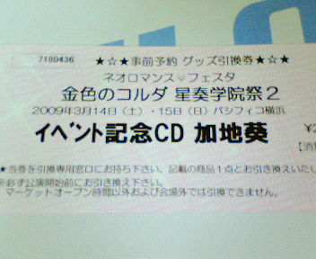 昨日、コー○ーさんから、祭のチケットが届きました。