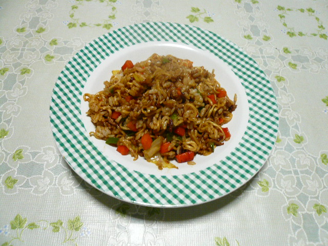 やきそば弁当の中のソースも使いましたが、オイスターとかみりんとか醤油で味を調整したら、けっこういいお味になりました。