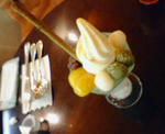 「あんずとあずきの和風パフェ」と「あんずとあずきのワッフル」です(笑)。