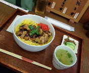 水郷のとりやさんでは、私はやきとり丼を、相棒殿は水郷の親子丼を注文。