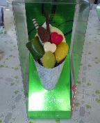 初めて作られたひなアイスは、生クリームのかけ方がいびつにはなっていましたが、美味しかったです。