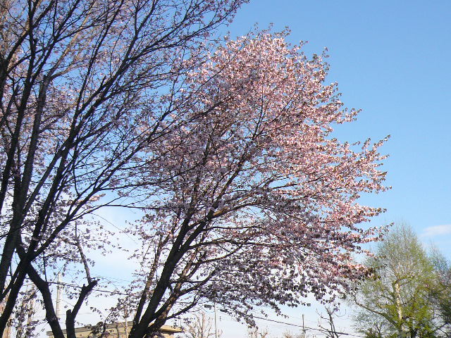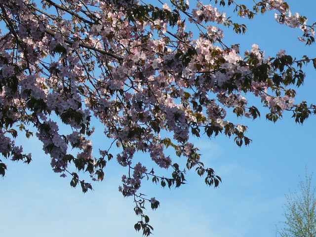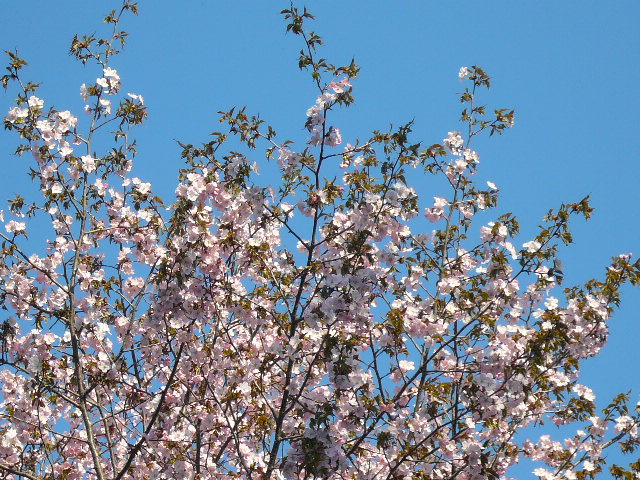 今年は寒い日が長かったせいか、花と葉が同時に成長してて、満開になる前から葉が目立ってます。