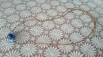 コサージュは、羊毛をボールに巻き付け、洗剤の入ったお湯でひたすら擦り固めていきました。