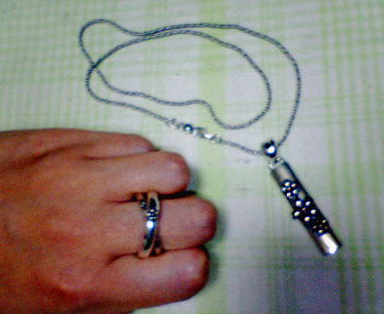 こちらが、かすうで購入してきた桜花のペンダントと2連リングです。