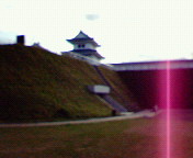 本日の画像は、復元ホヤホヤの土塁と櫓です。