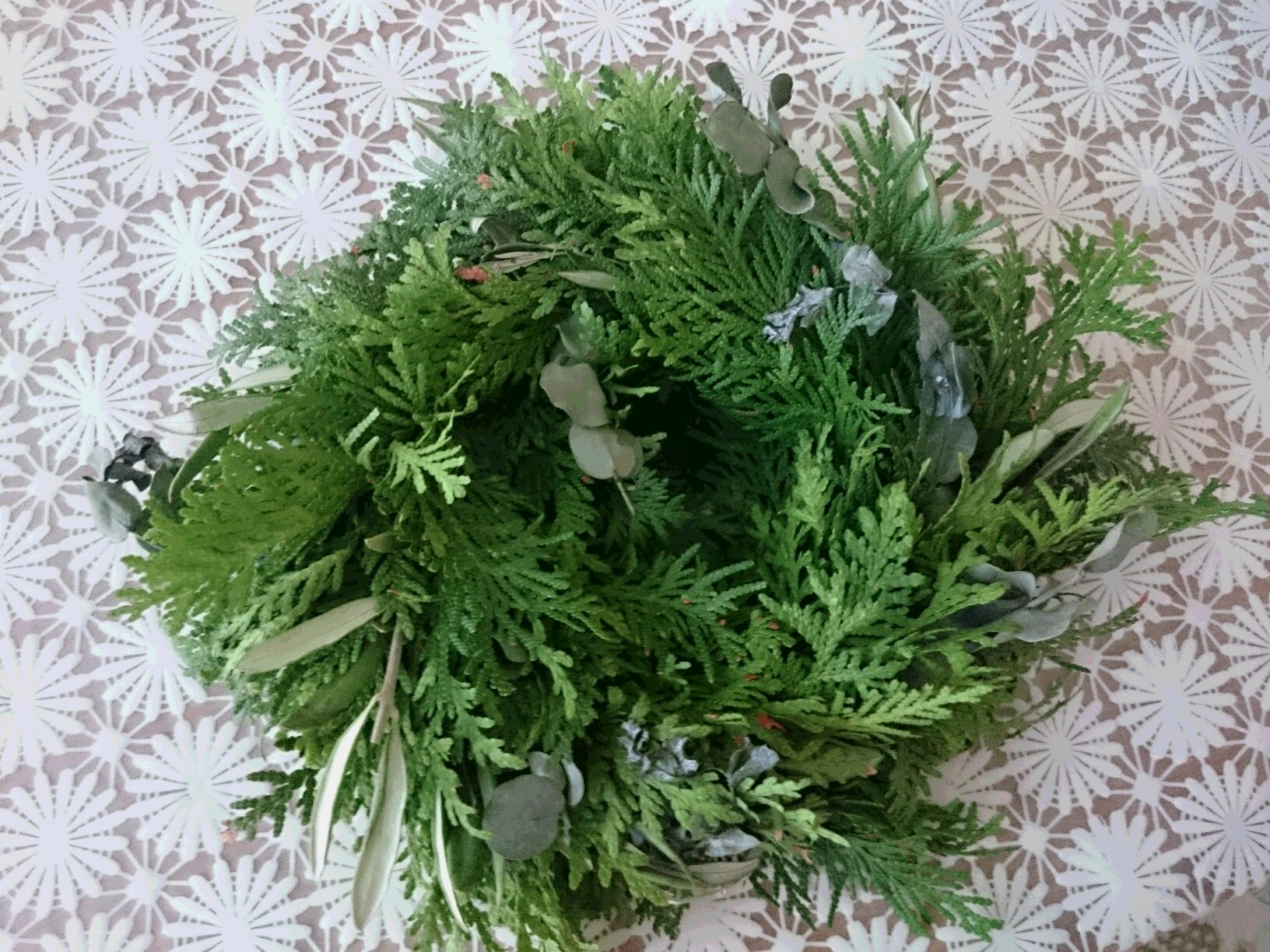 ラストに、ヒダやユーカリをつかってリースを作りました。
